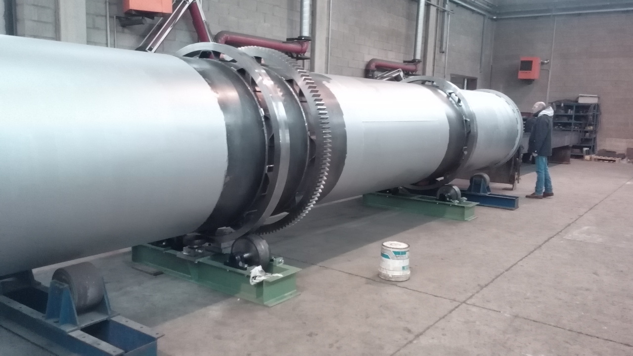Il primo tratta lana di roccia in forma granulare (0-10 mm) che viene immessa nell’essiccatore con un’umidità del 10% e una portata di 6 ton/h. Il prodotto viene trattato con gas caldi diretti provenienti da un bruciatore a metano; la lana di roccia in uscita ha un’umidità residua inferiore all’1% con portata allo scarico di 5.5 ton/h (H2O evaporata 0.5 ton/h).
