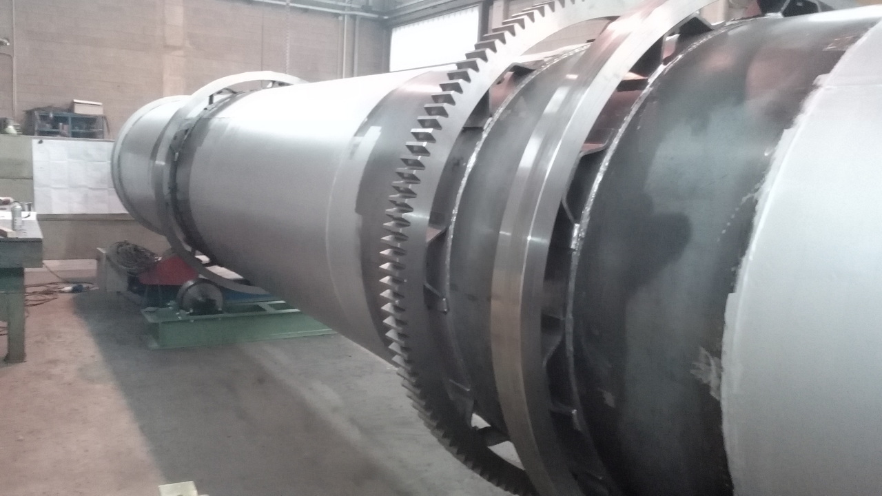 The second plant, on the other hand, treats calcium carbonate (CaCo3) with incoming humidity of 8%. The dryer is fed with 12 tons/h of wet material and discharges 11 tons/h of calcium carbonate with residual moisture ≤1% (1 ton/h evaporated H2O). Our dryers are equipped with continuous modulation burners which, thanks to suitably positioned thermocouples, can compensate for the physiological fluctuations in the humidity of the product being fed, ensuring consistency of the output characteristics and, if the percentage of water contained in the product is lower, they decrease the temperature with consequent fuel saving.