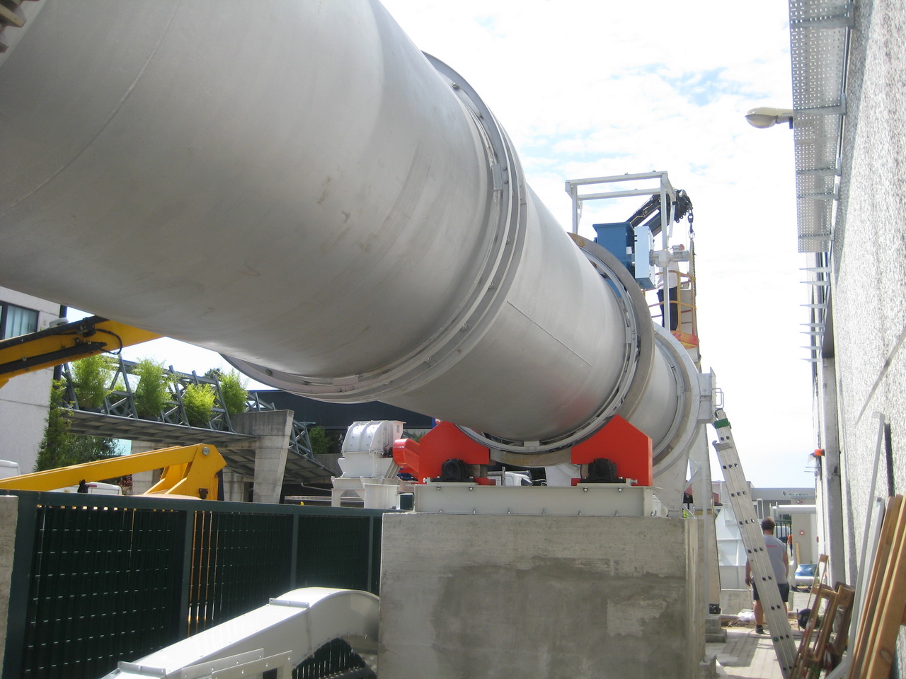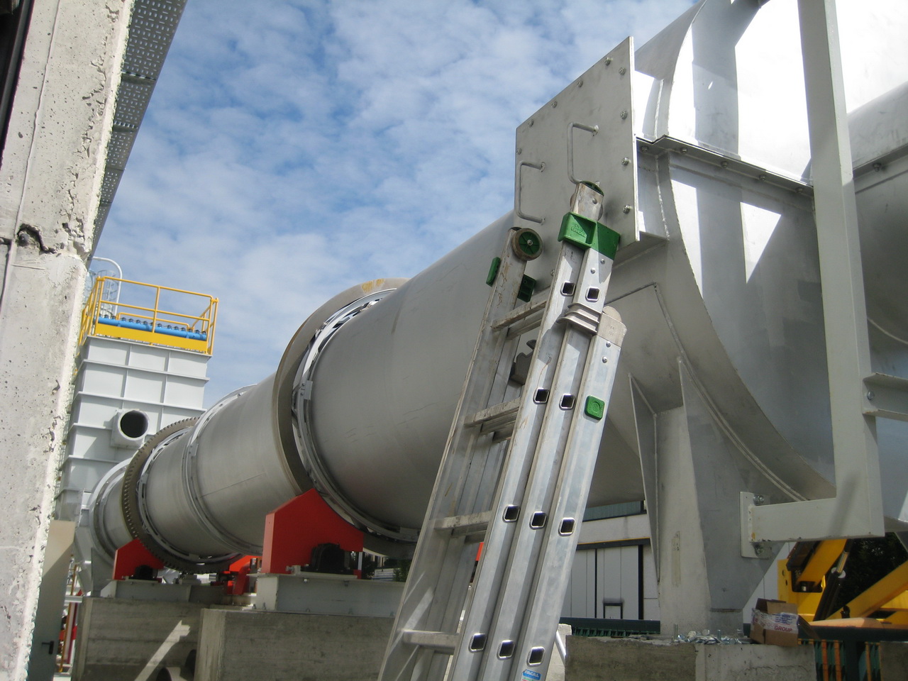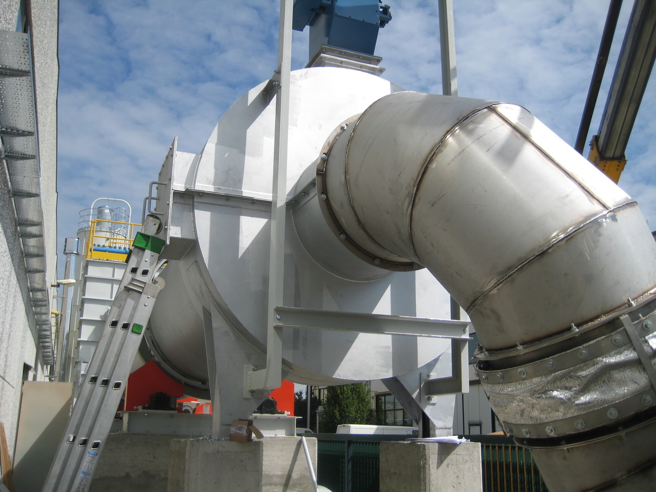 The fan at the rear of the plant, which keeps the entire line in suction and which at the same time guarantees the flow of hot gases inside the kiln, discharges the exhausted gases into the atmosphere, suitably filtered, now at a low temperature and at a high moisture content, being burdened with the crystallization water removed during the calcination process inside the furnace.