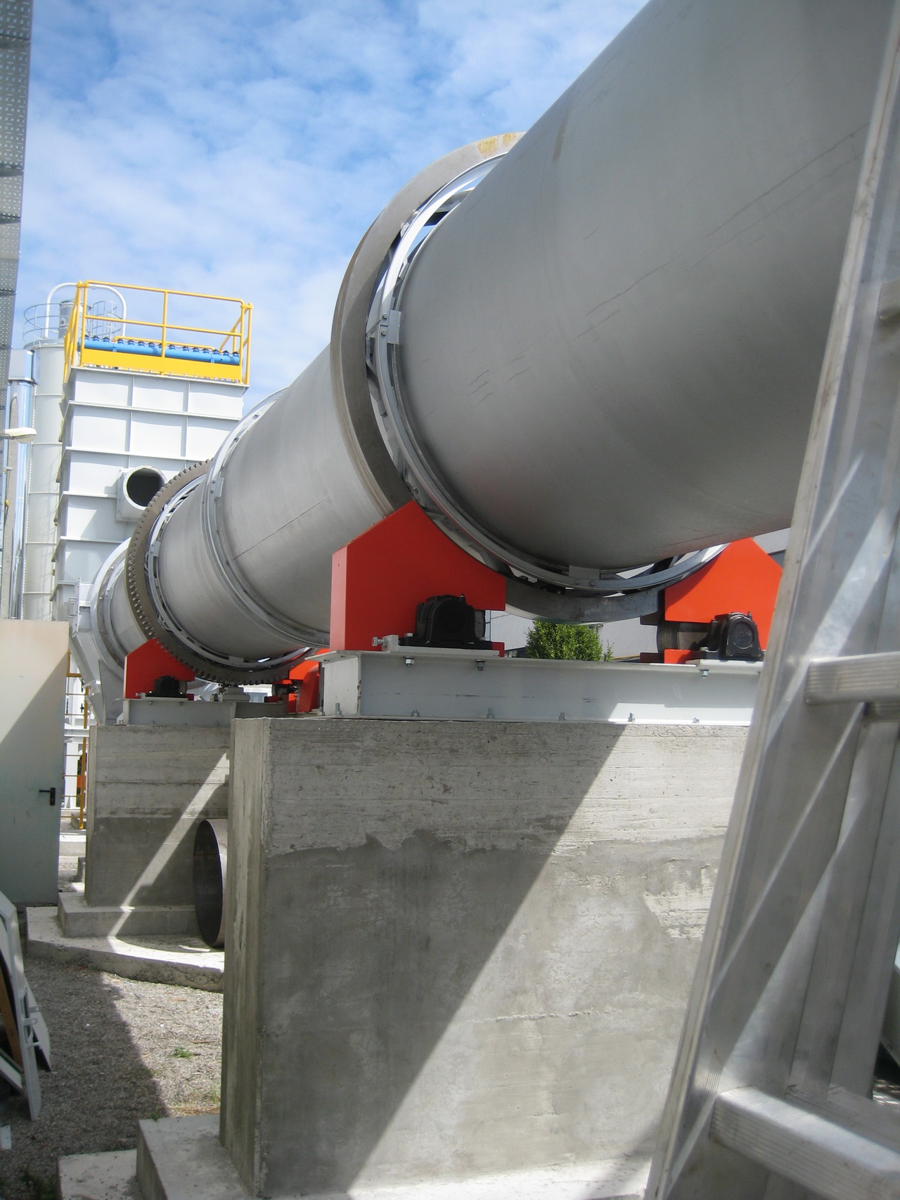 The fan at the rear of the plant, which keeps the entire line in suction and which at the same time guarantees the flow of hot gases inside the kiln, discharges the exhausted gases into the atmosphere, suitably filtered, now at a low temperature and at a high moisture content, being burdened with the crystallization water removed during the calcination process inside the furnace.